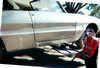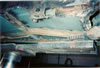 The car was entirely disassembled and dry soda blasted. All floor pans were removed, not cut out but pried out at all factory seams. New and expensive stamped pans from Europe were installed in a near perfect manner. All other panels are original, and every factory seam and spot weld is perfect including rockers. The single rust spot this car had was a golf ball-sized spot on the passenger side rocker about mid-way that was cut out and metal was welded in. There was no other rust on this car at all. The car was originally the graphite grey code. The brightwork is all stainless on this car, and it has been straightened and polished to a very high quality. The body comes together beautifully with the Carello covers, and because this was the last year this US-bound car had the factory stud holes for this setup, these installed perfectly.